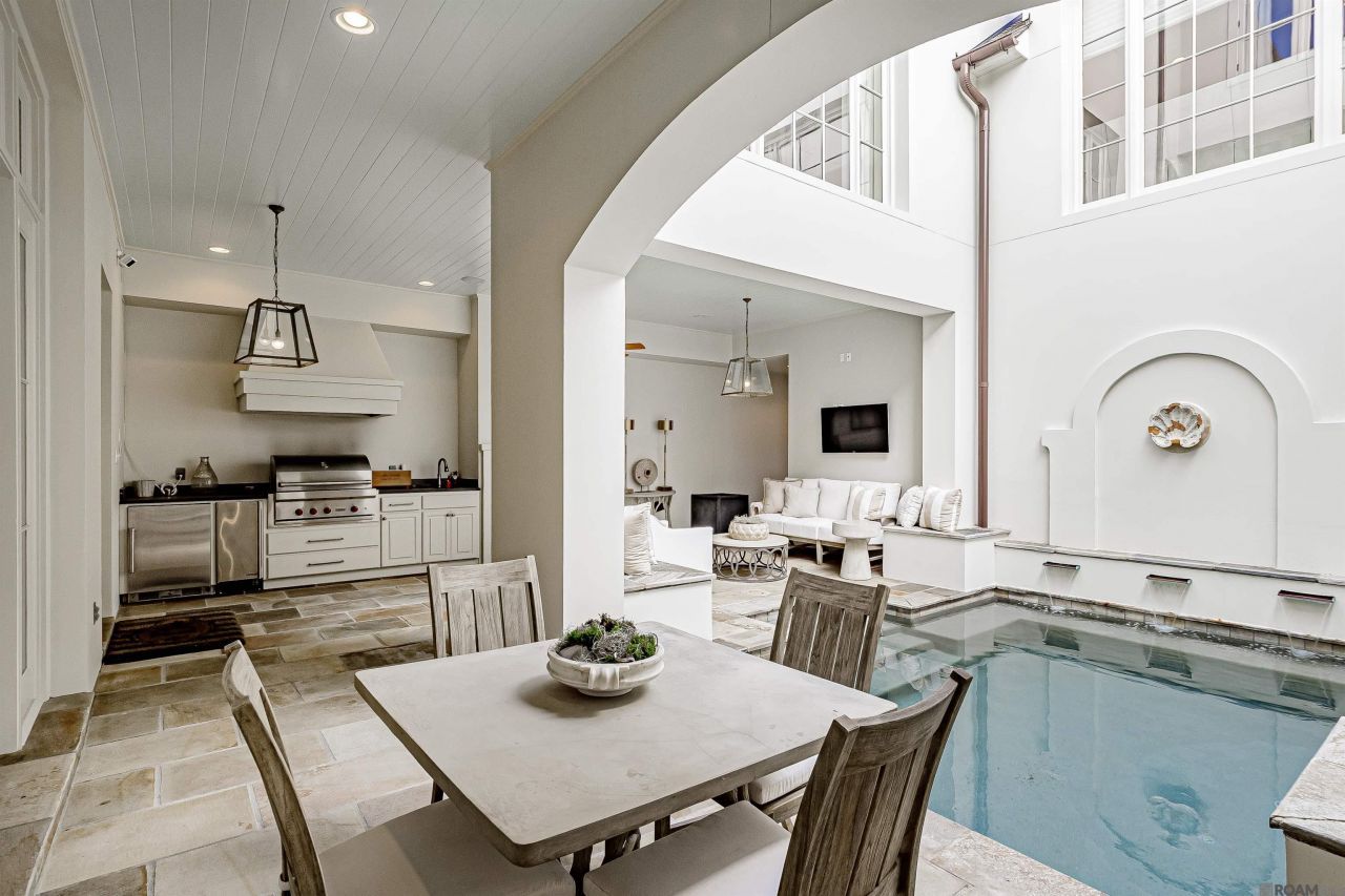 Welcome to COUNTRY CLUB PLACE! This exquisite townhome, custom-designed with luxury and comfort in mind, was designed to overlook the picturesque Baton Rouge Country Club Golf Course. As you enter through the grand foyer, you are greeted by an inviting courtyard featuring a sparkling POOL and a covered OUTDOOR KITCHEN/DEN area, ideal for entertaining family and friends. The first level offers two spacious bedrooms and two baths, including one conveniently located for pool access. Ascend the elegant wide curving stairway or take the private elevator to the second level, where you'll discover a spectacular CHEF'S KITCHEN. This culinary haven boasts a WOLF 6-burner stove with griddle, high-end painted cabinets, a SubZero refrigerator and freezer, and a large island perfect for meal prep. The kitchen also features natural stone floors and soaring 10-foot ceilings, along with a WALK-THROUGH BAR equipped with an ice maker and wine fridge. Relax in the bright KEEPING ROOM, complete with a cozy fireplace and ample seating. The expansive 13.6x17 DINING ROOM provides a perfect setting for celebrations, conveniently connecting to the bar area for additional storage and entertaining needs. Unwind in the spacious LIVING ROOM (30x18), which opens through glass French doors onto a covered PORCH that showcases stunning views of the veranda and lush golf course. Retreat to the serene 3rd floor master suite, designed for ultimate relaxation, featuring his and her baths and closets for generous storage. This level also includes a second utility room and a versatile office/nursery space, catering to all your needs. Nestled in the gated community of Country Club Place, this unique luxury townhome offers easy access to all the conveniences of town while providing a tranquil escape. Don't miss your chance to own this exceptional home, where elegance and ease of living harmoniously blend.