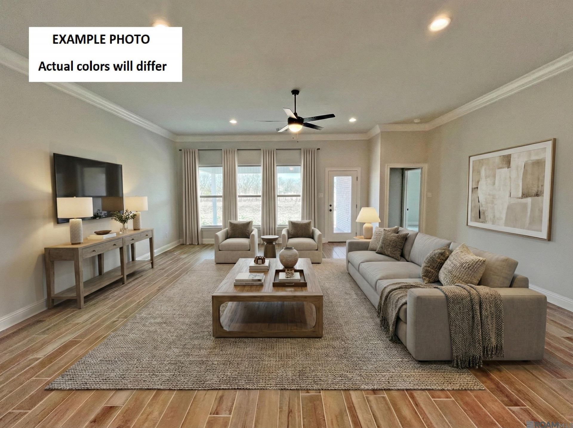 The AZALEA IV B in Juban Gardens community offers a 4 bedroom, 3 full bathroom, open and split design. Features: double vanity, garden tub, separate shower, and a large walk-in closet in the primary suite, primary closet goes through to the laundry room for added convenience, double vanity in the second bathroom, a kitchen island overlooking the dining room, spacious walk-in pantry, mud room with boot bench, covered rear patio, ceiling fans in the living room and primary bedroom are standard, smart connect wi-fi thermostat, smoke and carbon monoxide detectors, post tension slab, landscaping, architectural 30-year shingles, flood lights, and more! Energy Efficient Features: a tankless gas water heater, a kitchen appliance package, low E tilt-in windows, and more!