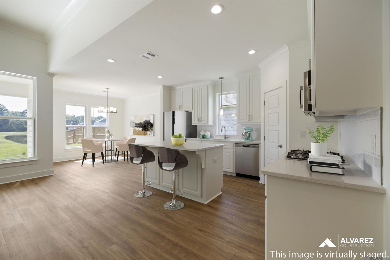 4.99% (5.73%) interest rate on GOV loans + closing cost assistance available! Estimated completion: complete and ready to move in *TO BE ELIGIBLE FOR A LOW INTEREST RATE ON GOV LOANS & CLOSING COST ASSISTANCE, A BUYER MUST USE SELLER'S PREFERRED MORTGAGE & TITLE COMPANY. NOT AVAILABLE ON ALL HOMES. OTHER RESTRICTIONS APPLY. CONTACT COMMUNITY SALES MANAGER FOR DETAILS.* Discover The Ash, a beautifully designed single-story home by Alvarez Construction offering 3 bedrooms, 2 baths, and 2,014 sq ft of open living space. The open-concept layout connects the living, dining, and kitchen areas, featuring granite countertops, custom cabinetry, stainless appliances, a gas cooktop, wall oven, chef's island, and walk-in pantry. The private primary suite includes dual vanities, soaking tub, separate shower, and walk-in closet. Additional highlights include a home office, large utility room, covered rear patio, and energy-efficient features. Expanded concrete patio (144 sq. ft.) Level 2 Luxury Vinyl Plank in all bedrooms and living areas Upgraded to quartz countertops throughout the home Added kitchen cabinets to the ceiling Added soft close doors and drawers to all cabinets (not including the trashcan pullout) Upgraded lighting to our level 2 satin nickel dart collection Upgraded the owners shower to a tiled shower Upgraded to level 3 cabinet hardware square satin pulls