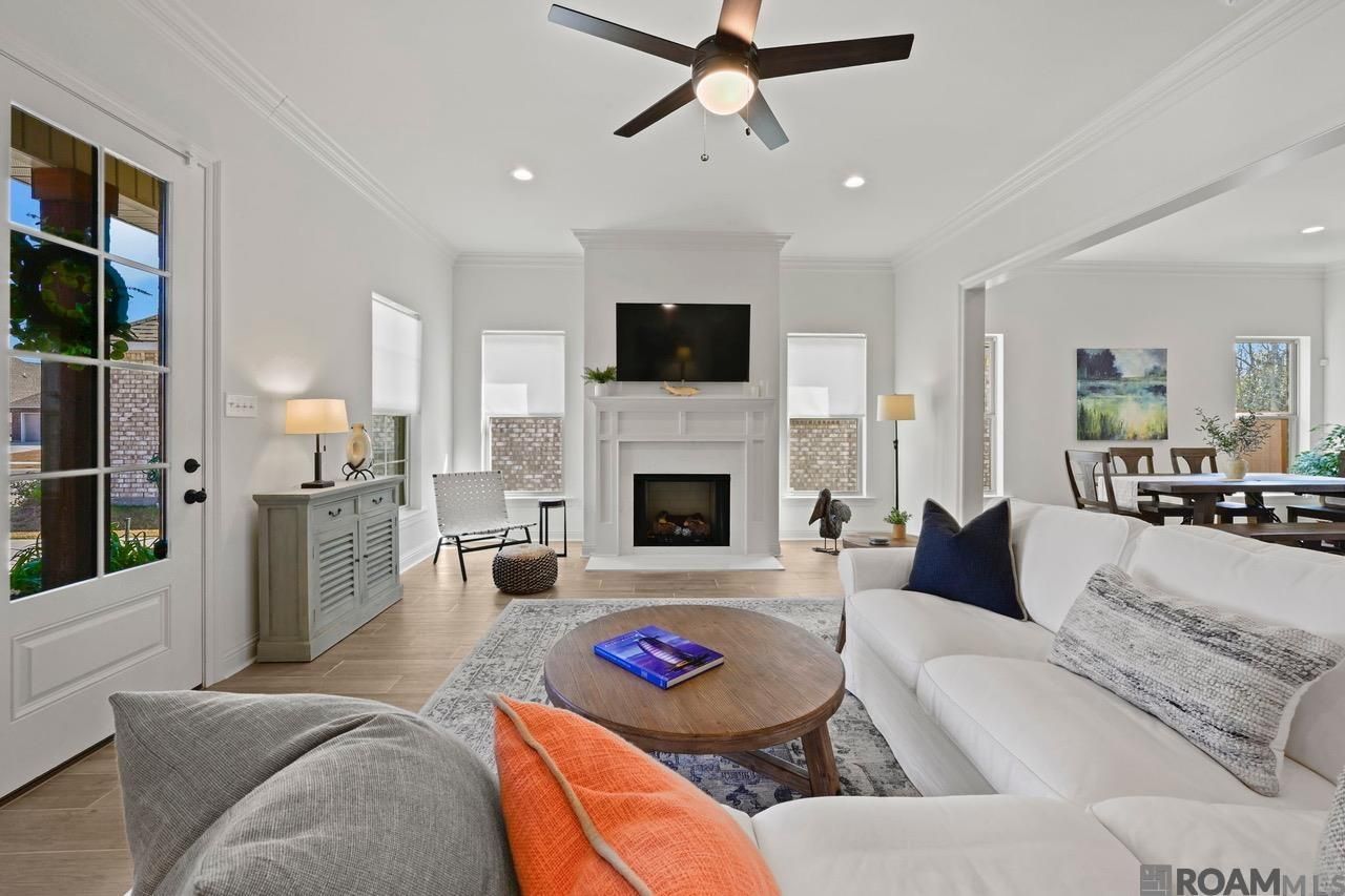 Better Than New ? and the Upgrades Prove It! Welcome to this picture-perfect home in Bellegrove Square, where every detail has been thoughtfully elevated above the builder standard. A private patio addition overlooks the peaceful stream that naturally separates this community from its neighbors ? your own backyard retreat. Inside, an open floor plan sets the tone, anchored by a cozy gas fireplace that ties the living space together beautifully. The kitchen is built to impress with a stainless steel gas range, microwave, and dishwasher, all complemented by an upgraded ceramic subway tile backsplash that adds a clean, designer touch. The primary suite is a true sanctuary ? spacious bedroom, walk-in closet, and an en suite bath featuring dual sinks, a soaking tub, and a separate shower. Throughout the home, you'll find quartz countertops, ceiling fans, and garage coach lights adding both function and polish. Wood-look ceramic tile flows seamlessly through all living areas, delivering warmth and a cohesive, high-end feel underfoot. Seller is leaving the landscape lighting ? so this home shines just as beautifully at night as it does during the day. Ideally located with easy access to LSU, shopping, dining, and major employers. Homes like this don't come along often ? and they don't last long. Schedule your private tour today!