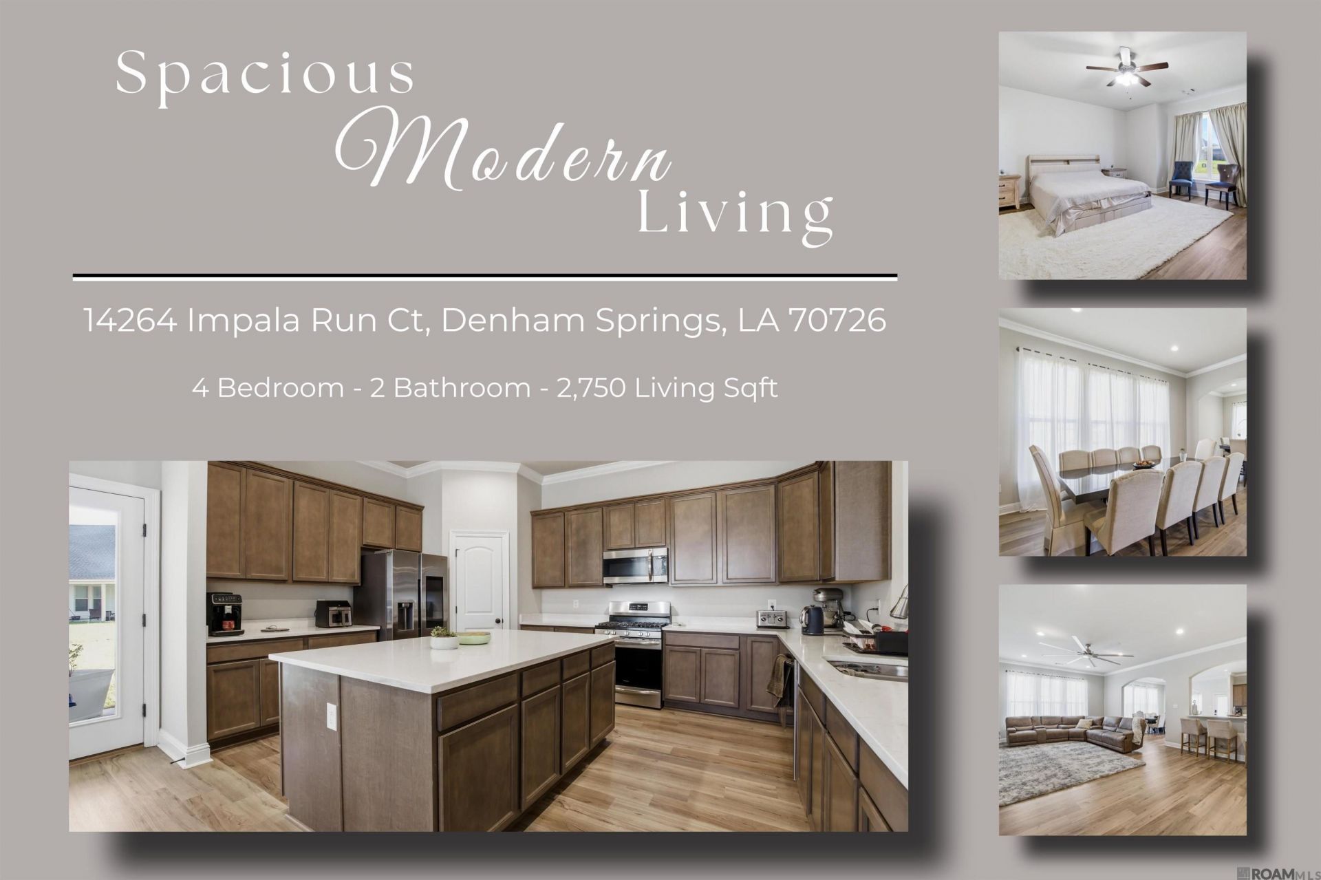 Beautifully maintained 4-bedroom, 2-bath home offering approximately 2,750 sq ft of spacious, open living in a quiet Denham Springs community. Built just a few years ago, this home combines modern finishes with a functional layout designed for everyday living and entertaining. Step inside to an expansive open-concept floor plan featuring a large living area that flows seamlessly into the kitchen and dining spaces. The kitchen is well-appointed with quartz countertops, ample cabinetry, stainless appliances, and a large center island?perfect for hosting or casual meals. Luxury vinyl plank flooring runs throughout the main areas, offering both durability and style. The split floor plan provides added privacy, with a generously sized primary suite tucked away from the additional bedrooms. The primary bath includes dual vanities, a soaking tub, separate shower, and a spacious walk-in closet. Three additional bedrooms offer flexibility for guests, a home office, or growing households. Enjoy the outdoors with a covered patio and a large backyard, ideal for relaxing or entertaining. Located in a peaceful neighborhood with convenient access to shopping, dining, and local schools, this home offers the perfect blend of comfort, space, and convenience. Schedule your private showing today!