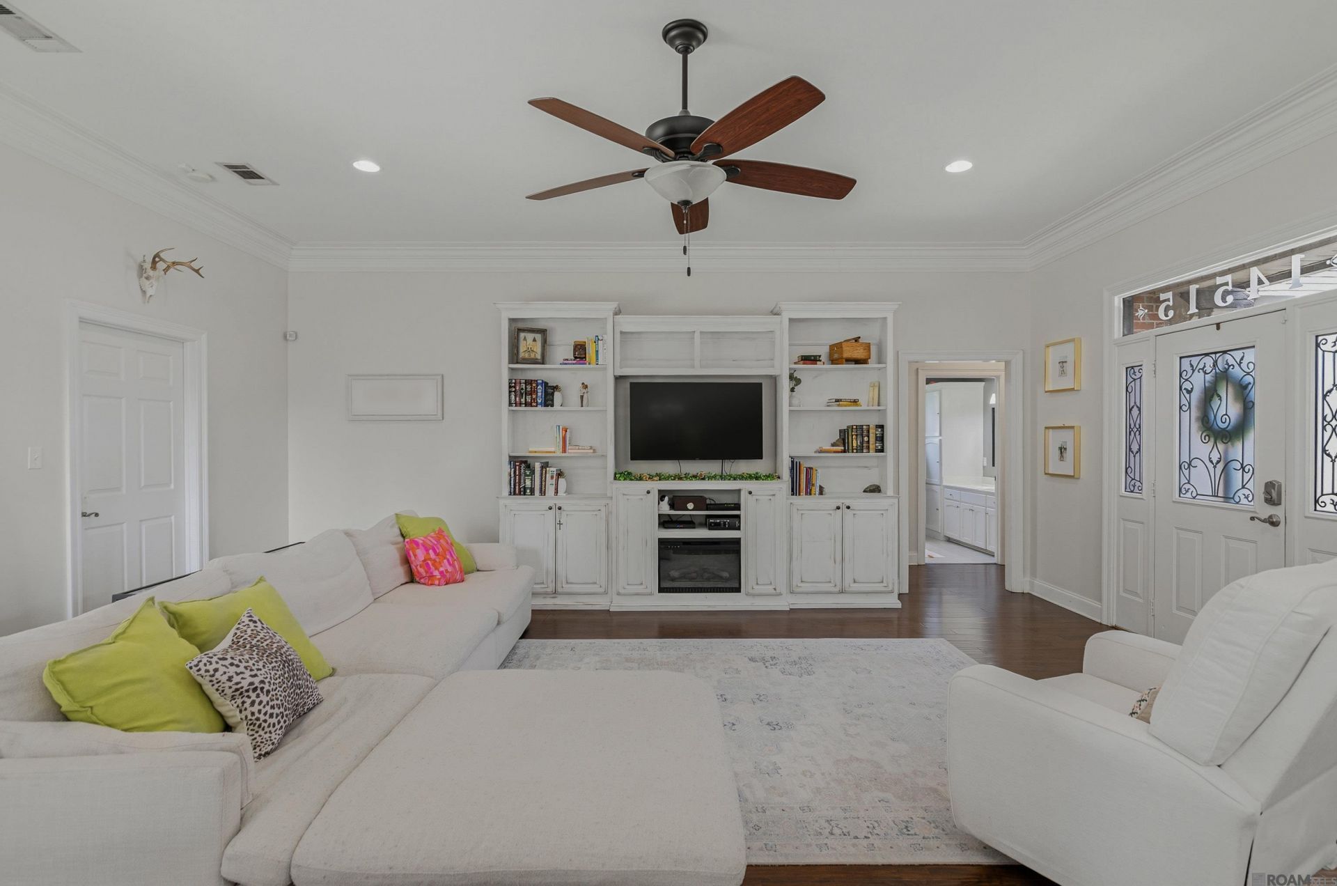 Beautiful and well-maintained 3 bedroom, 2 bath home tucked away in a quiet one-street subdivision. This home offers an open floor plan with pretty laminate wood flooring in the living and dining areas, along with triple crown molding that adds a nice touch throughout. A brand new, professional paint-job as an added bonus making the space bright and updated. The large kitchen features plenty of cabinet space and a functional layout that opens to the main living area?perfect for everyday living and entertaining. The spacious primary suite includes great natural light and an ensuite bath with a oversized tub, separate custom, tiled shower, double vanities, and a big walk-in closet with built-ins. Outside, you'll love the fully fenced yard, gorgeous landscaping, and both covered and open, extended patio space?ideal for relaxing or hosting. Additional features include decked attic space over the garage and custom gutters. You don't want to miss this one and you have to see the stunning curb appeal for yourself!