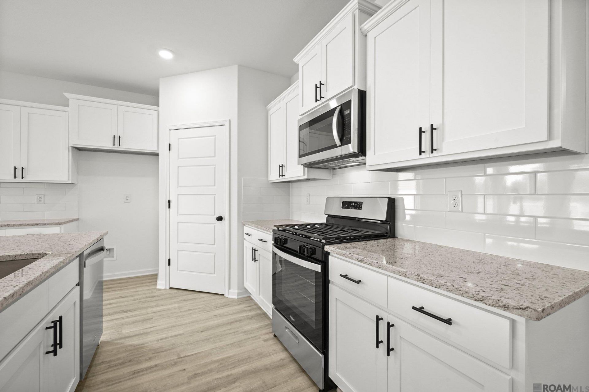 Welcome to the Lacombe floorplan, a spacious 5-bedroom, 3-bathroom home located in our exciting new home community in Zachary, Louisiana. With 2,029 square feet of living space, the Lacombe offers ample room for growing families, with three stunning exterior options to suit your style. Inside this 5-bedroom, 3-bathroom home, you'll find 2,029 square feet of comfortable living. As you walk into this home, you'll be greeted by the first set of bedrooms along with the first guest bathroom. Traveling down the hallway you'll see what open concept was meant to be with the kitchen, living and dining area all within reach of each other while being separate enough for individuality. As you enter, you'll be greeted by a hallway leading to the first set of bedrooms and a guest bathroom, providing privacy and convenience. The heart of the home features an open-concept kitchen, living room, and dining area, designed for modern living and effortless entertaining. The kitchen is equipped with shaker-style cabinets, gooseneck pulldown faucets, stainless-steel appliances (stove, microwave hood, dishwasher), and 3 cm granite countertops. A single-basin under-mount sink completes the space, perfect for the home chef. The adjacent laundry room provides easy access to the dining area. Down the hallway, you'll find another set of bedrooms and an additional guest bathroom. Each bedroom is carpeted and includes spacious closets for added storage. The primary bedroom suite offers a true retreat, featuring a massive walk-in closet with an integrated linen closet, and an en suite bathroom with dual vanities, a separate tub and shower, and a water closet for added privacy. Explore the Lacombe floorplan today and discover why this beautiful home is perfect for you and your family. Contact us now to schedule a tour! Disclaimer: final options, finishes, colors, etc. are subject to change until home is finished.