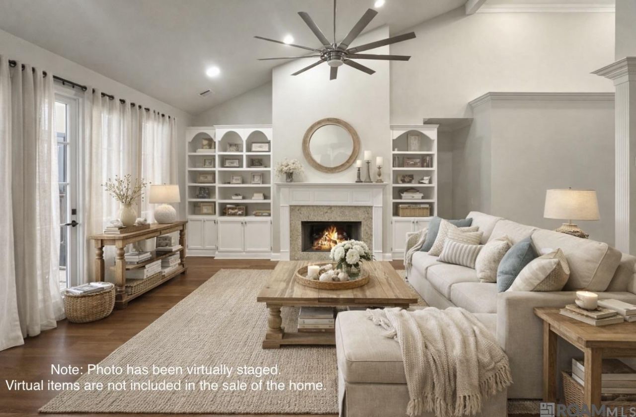 Located in the desirable Jefferson Crossing Subdivision, this stunning lake lot home offers 5 bedrooms and 3 full baths and is served by top-rated Ascension Parish schools. The recently painted white brick exterior is complemented by a Generac Standby Home Generator, Gutters, New Roof Installed 2026! Flood Zone X and Never Flooded. Inside, the freshly painted neutral interior features wood floors in the living room, dining room, and foyer, along with updated ceiling fans in all bedrooms, the living room, and breakfast room, plus updated recessed smart lighting with color changing features throughout. The kitchen is a standout with custom cypress cabinets, granite countertops, a 7-month-old Thermador professional gas range, 7-month-old dishwasher, built-in microwave, island, breakfast bar, and a nearby breakfast room with windows overlooking the lake. The living room showcases a vaulted ceiling, built-in bookshelves, a gas log fireplace with mantle, and expansive windows capturing beautiful water views, opening seamlessly to the dining room and foyer. The spacious primary suite offers a tray ceiling and water views, while the primary bath includes separate granite-topped vanities, a soaker tub, separate shower, water closet, and a large walk-in closet. An additional full bedroom and bathroom are located downstairs, while upstairs features three additional bedrooms and a full bath. The laundry room is generously sized with a window, extra storage cabinetry, hanging space, and pantry. Outdoor living shines with a screened back porch, extended patio with space for outdoor cooking, and black aluminum fencing across the back to preserve the perfect lake view. Additional features include a 2-car garage and storage room. Jefferson Crossing offers a neighborhood pool and clubhouse and is conveniently located just off Jefferson Hwy and Airline Hwy, making this an excellent location. Schedule a showing today.