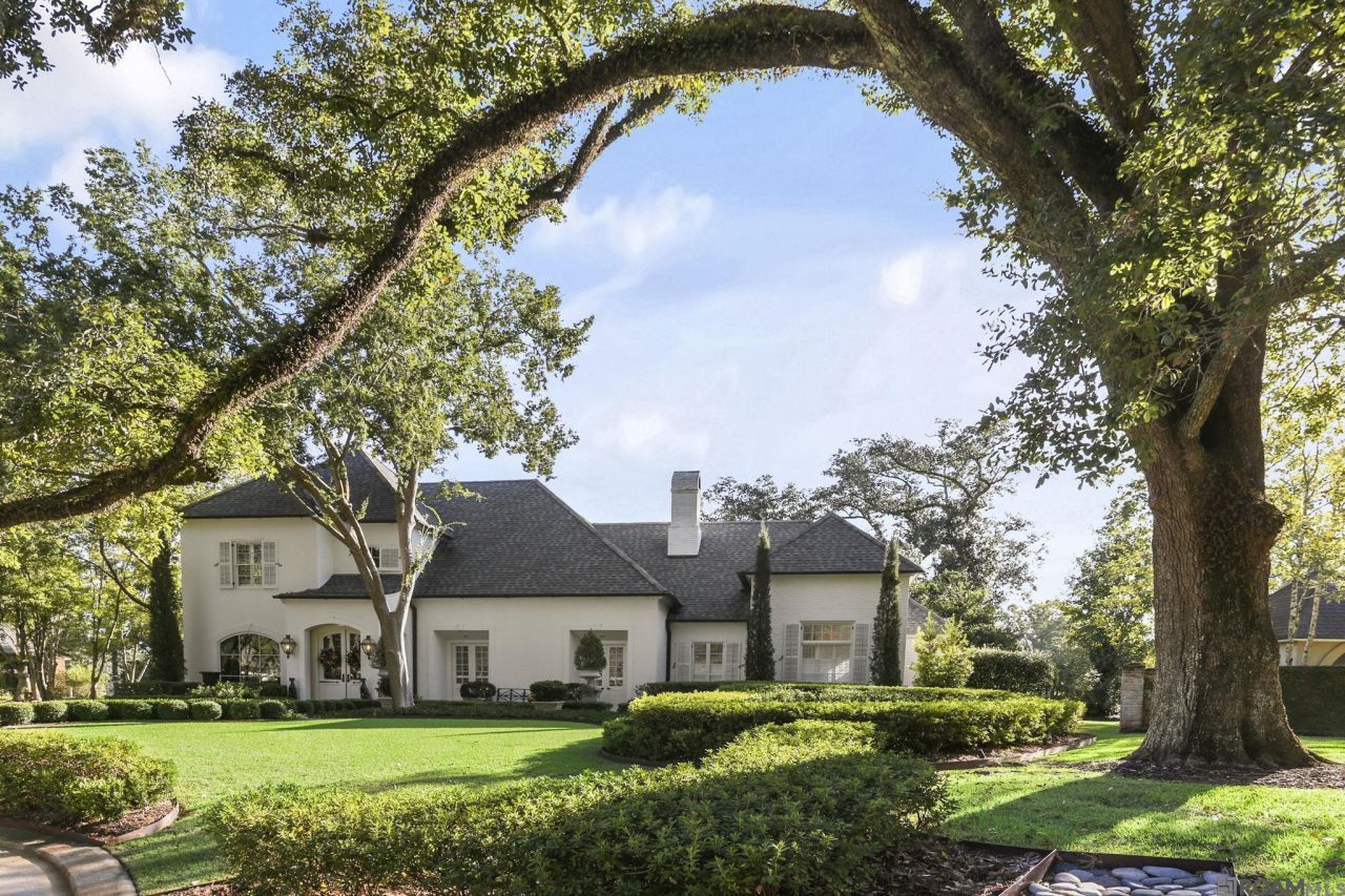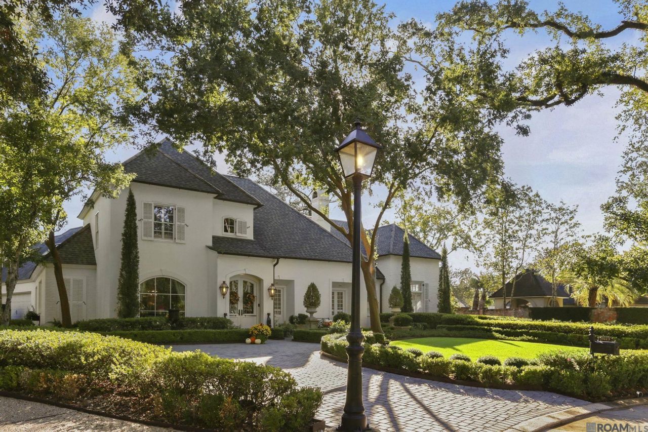 Professionally renovated and eloquently styled! Every inch of this remarkable modern French home has been thoughtfully enhanced, replaced, or redesigned since its purchase. The reconfigured floor plan includes a dramatic 20' foyer and redesigned iron staircase. The living room and solarium join effortlessly overlooking the peaceful resort style backyard with a sleek 40' gunite lap pool with silver travertine decking, an 8-seat hot tub, remote, controlled lighting and fountain system. The dining room enclosed in serene wallpaper leads to a butler's pantry which joins the chef's kitchen. The kitchen was fully rebuilt with an oversized island, Italian gas range, and quartz countertops. The primary suite overlooks the pool and magnificent gardens, offering a large sitting area with a fireplace, luxurious bath with double dressing areas, pass-through shower, and jetted tub. The 5th versatile bedroom is ideal for a library/sitting area. The office is also a versatile space for a media /game room. Other amenities include (see attached full amenity list): upstairs library/bonus room, custom plantation shutters, custom draperies, wallpaper and mirrored feature walls, antique architectural salvage doors, newer garage doors and motors, cobblestone driveway, and a whole house generator. Extensive European landscaping, with professional lighting throughout the grounds, includes mature, live oaks, Italian cypress, camellias, and crepe myrtles creating a park like setting with multiple crushed stone patios, a play yard, and exterior sound system. Every system has been maintained or upgraded " HVAC, water heaters, plumbing, lighting, drainage, and security. Nestled on a quiet cul-de-sac, adjacent to golf course lake/with lounge chairs (lake access via adjacent CCLA, common ground). This home has exceptional craftsmanship and design!