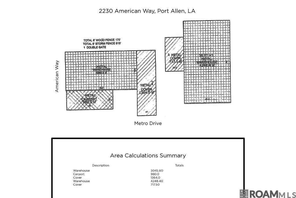 1.77-acre property - Just Off LA-1, featuring two metal buildings totaling over 7,200 sq ft of enclosed space with a mix of warehouse and residential-style accommodations. Metal Building #1 offers 3,046 sq ft of enclosed space with a 980 sq ft lean-to and an additional 1,364 sq ft lean-to. Approximately 1,100 sq ft is built out, featuring 2 bedrooms, 2 full bathrooms, a kitchen, and an open living/dining area. This space could also be easily converted to office use to support business operations. The remaining half is open warehouse storage. Metal Building #2 provides 4,248 sq ft of warehouse storage with a 717 sq ft lean-to and eight roll-up doors (four on each side), one bathroom, and 16' eave height. Located in the Greater Baton Rouge Industrial Park, the property enjoys quick access to LA-1, I-10, and the Port of Greater Baton Rouge. The property is currently used for storing construction material. Steel will be removed, but the seller prefers to leave the remaining items. These extra materials could be a bonus for the buyer.