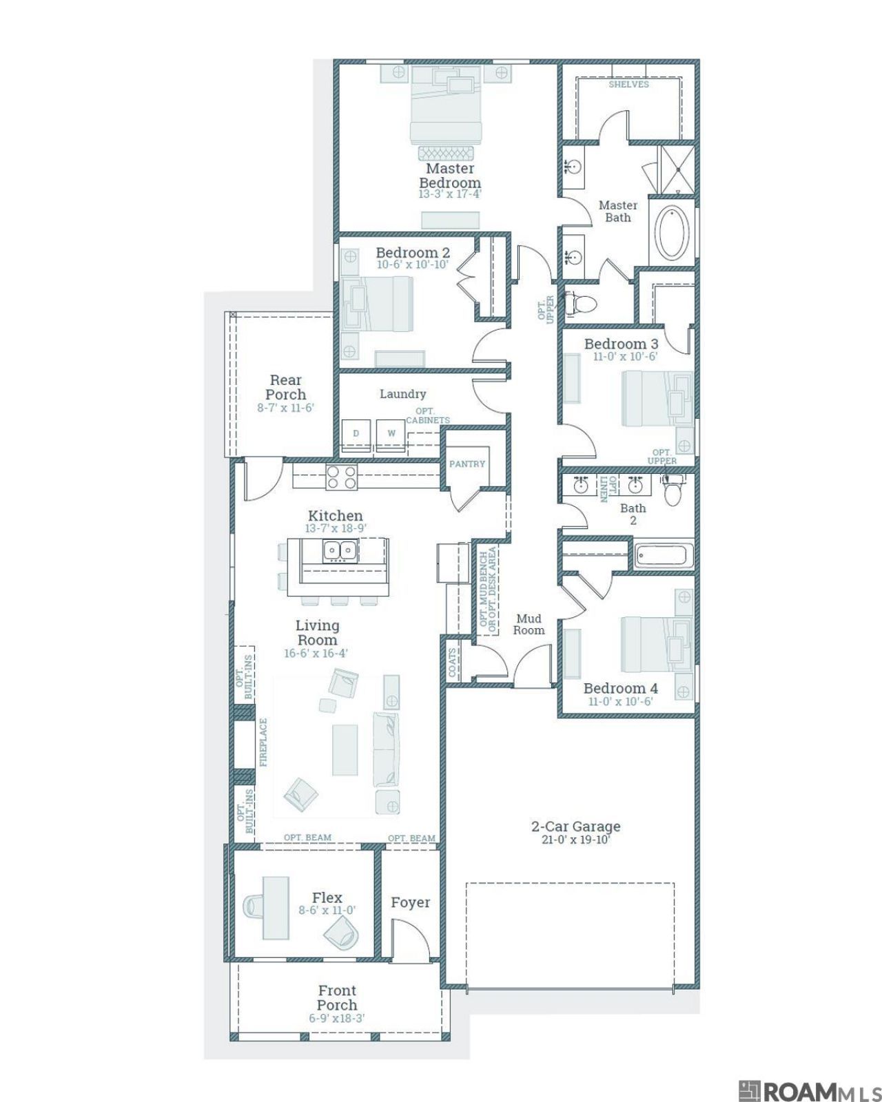 Hadley A Floor Plan by Level Homes underway in Belle Savanne! The Hadley is a thoughtfully designed one-story home featuring four bedrooms, two bathrooms, and just over 2,000 square feet of living space. This open and split floor plan offers both functionality and elegance, perfect for modern living. Upon entering through the inviting front porch with stained cypress beams and a hanging gas lantern, you are welcomed into the foyer that leads seamlessly into the formal dining room, open concept living area, and gourmet kitchen. The living room is centered around a ventless gas fireplace with a Carrara Luxe quartz surround, with the option to add custom built-in wall units. The kitchen boasts custom-painted cabinetry with 5 hardware pulls, a spacious center island with sink and pendant lighting, Carrara Luxe quartz countertops, a classic white beveled tile backsplash, and a stainless-steel appliance package, and a walk-in pantry. The spacious primary suite offers a spa-like bath featuring dual vanities with quartz countertops, framed mirrors, a separate 5' soaking tub, a beautifully tiled shower with a seamless glass enclosure, and a generous walk-in closet. Three additional bedrooms, a full bathroom with dual vanities, and a large laundry room (with an option for custom cabinetry) complete the home. At the garage entry, an optional mud bench or desk area and a coat closet provide additional convenience. The yard will be fully sodded and professionally landscaped, enhancing curb appeal. Estimated completion date of June 2026, buyers can pick/approve certain colors and options for a limited period of time. Belle Savanne is a walkable neighborhood with scenic lakes, green space, and a resort-style pool with cabana. Other homesites and floor plans available. *The completed pictures are not of the actual home but are of the same floorplan; colors and options may vary.