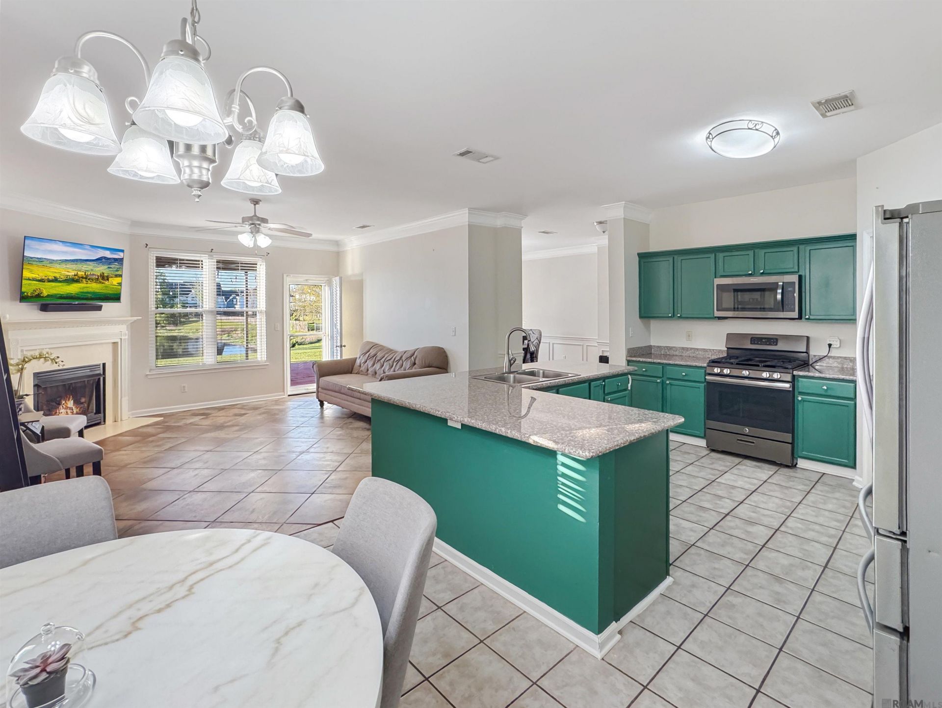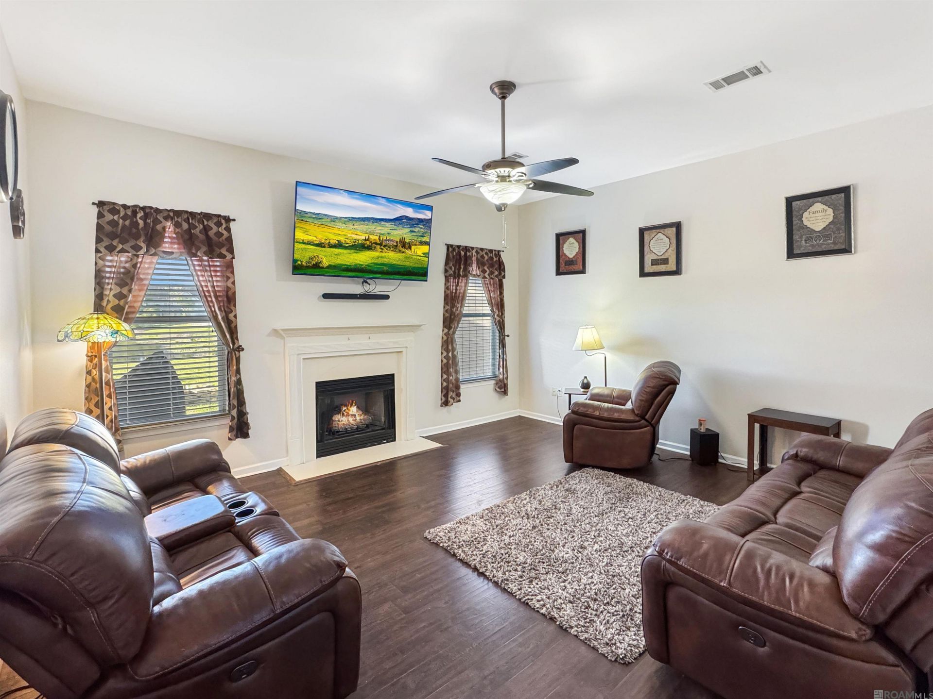 Welcome to this stunning lakefront retreat in the desirable Lakes at Oak Grove community in Prairieville! With breathtaking water views, a sprawling backyard, and thoughtfully designed living spaces across two levels, this 4-bedroom, 3-bath home is ready to impress from the moment you arrive. The main level features an open kitchen with a large island, gas range, and granite-style countertops, flowing into a keeping room with a fireplace and lake views. A separate dining room, breakfast area, and front living room round out the main floor ? plus a full bedroom downstairs, ideal for guests or multi-generational living. There's also a large secondary living area that offers even more flexibility and could easily function as a 5th bedroom. Upstairs you'll find an oversized primary suite with a bonus sitting area ? perfect for a home office, nursery, or flex space ? plus a double vanity bath with separate tub and shower. Two additional bedrooms and a full bath offer plenty of room for family or guests. Outside is where this home truly shines. The expansive, grassy lakefront backyard is one of the largest and most usable you'll find at this price point ? and the large covered patio overlooking the water is an entertainer's dream with gorgeous sunset views. Book your showing today!