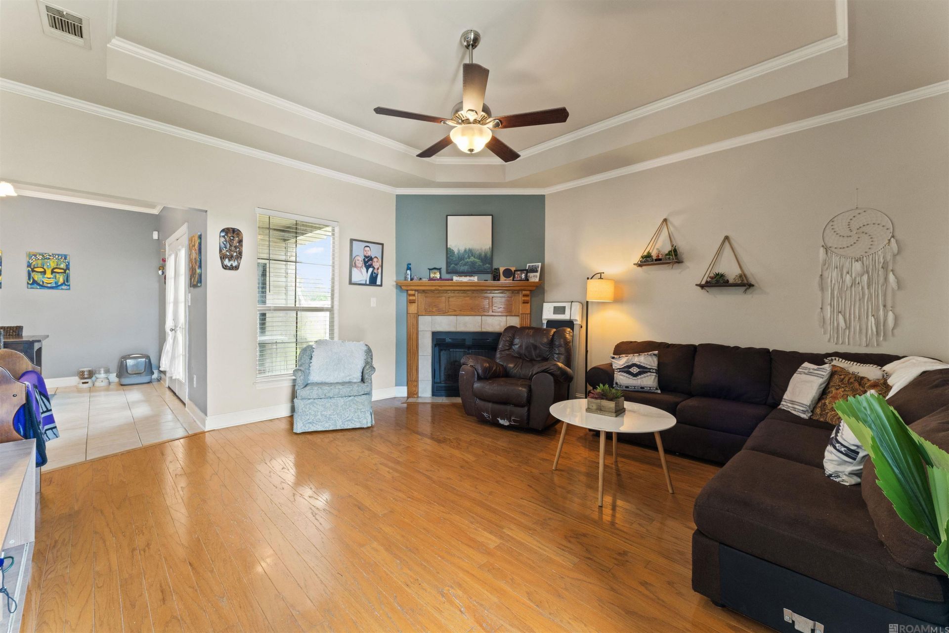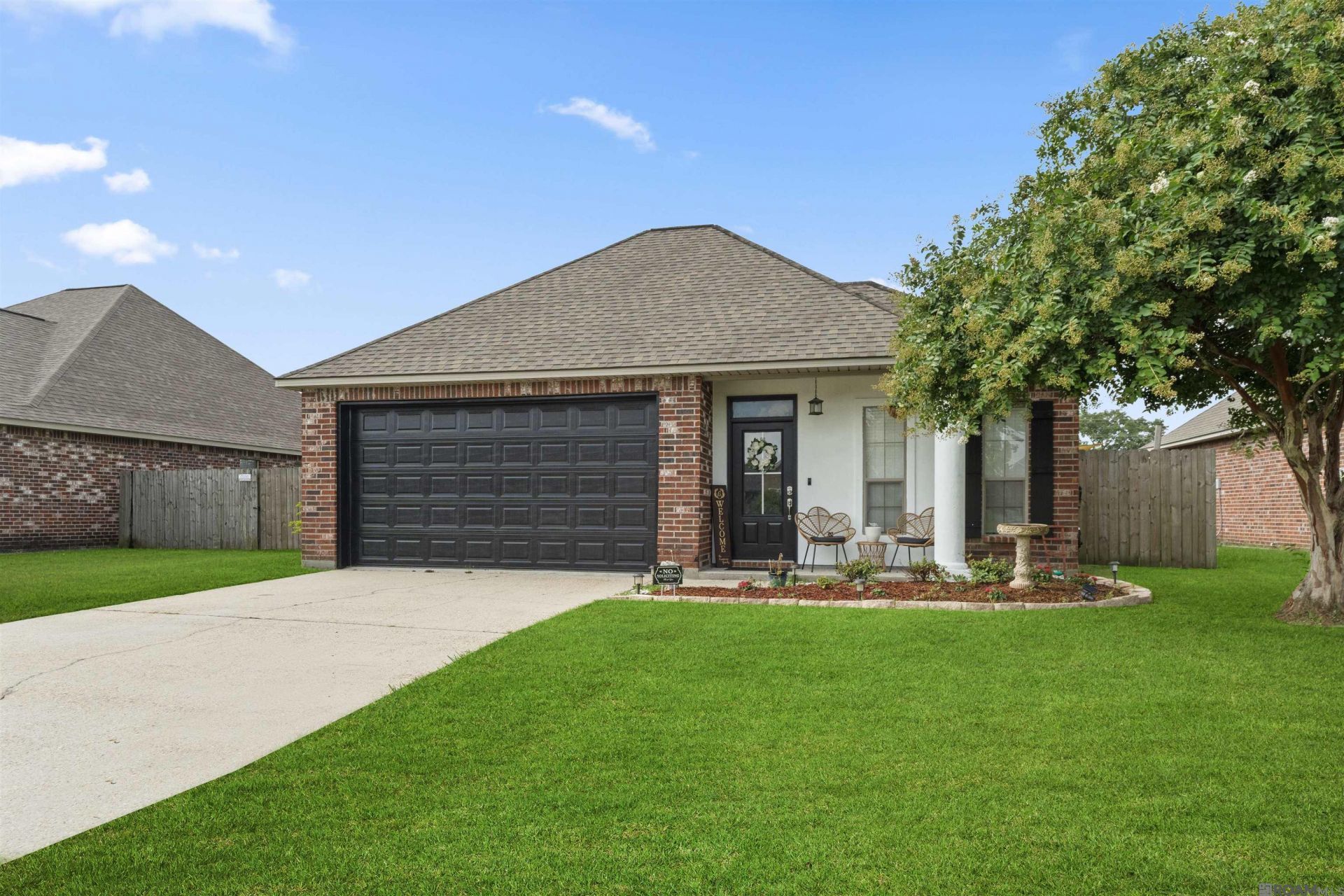Welcome to your dream home in a fantastic location, safely nestled in Flood Zone X, meaning no flood insurance is required. This beautiful residence is also in the zone for the new Prairieville High School. It boasts a huge open living area with a recessed ceiling, stunning wood floors, and a cozy gas log fireplace. The roof was replaced in 2014, and the AC, replaced in 2020. The large dining area features elegant French doors that open to a private patio and a fenced backyard, perfect for outdoor entertaining. The kitchen offers ample cabinet space and ceramic tile counters and floors, ideal for the home chef. Retreat to the spacious master bedroom, large enough to accommodate a king-size bed and more, with direct access to the patio. The master bath is a haven of relaxation with a jetted tub, double vanities, and two expansive walk-in closets for all your storage needs. Additional features include an enclosed 2-car garage and so much more. Don't miss out on this exceptional home?schedule your appointment today!