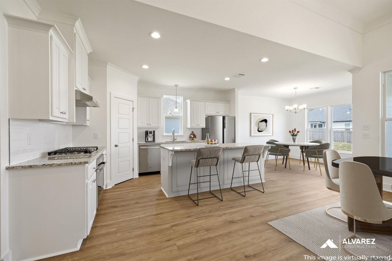 4.99% (5.73%) interest rate on GOV loans + closing cost assistance available! Estimated completion: complete and ready to move in *TO BE ELIGIBLE FOR A LOW INTEREST RATE ON GOV LOANS & CLOSING COST ASSISTANCE, A BUYER MUST USE SELLER'S PREFERRED MORTGAGE & TITLE COMPANY. NOT AVAILABLE ON ALL HOMES. OTHER RESTRICTIONS APPLY. CONTACT COMMUNITY SALES MANAGER FOR DETAILS.* The Maple is a spacious single-story home offering 4 bedrooms, 3 full baths, and a 2-car garage. An open-concept kitchen, dining, and living area with 12-foot ceilings creates an inviting space for everyday living and entertaining. The kitchen features a central island, walk-in pantry, and breakfast nook with access to a covered porch. The private owner's suite includes a separate tub, shower, and walk-in closet. Additional highlights include a gas fireplace, utility room off the garage, and ample storage throughout. Level 2 Luxury Vinyl Plank in all bedrooms and living areas
