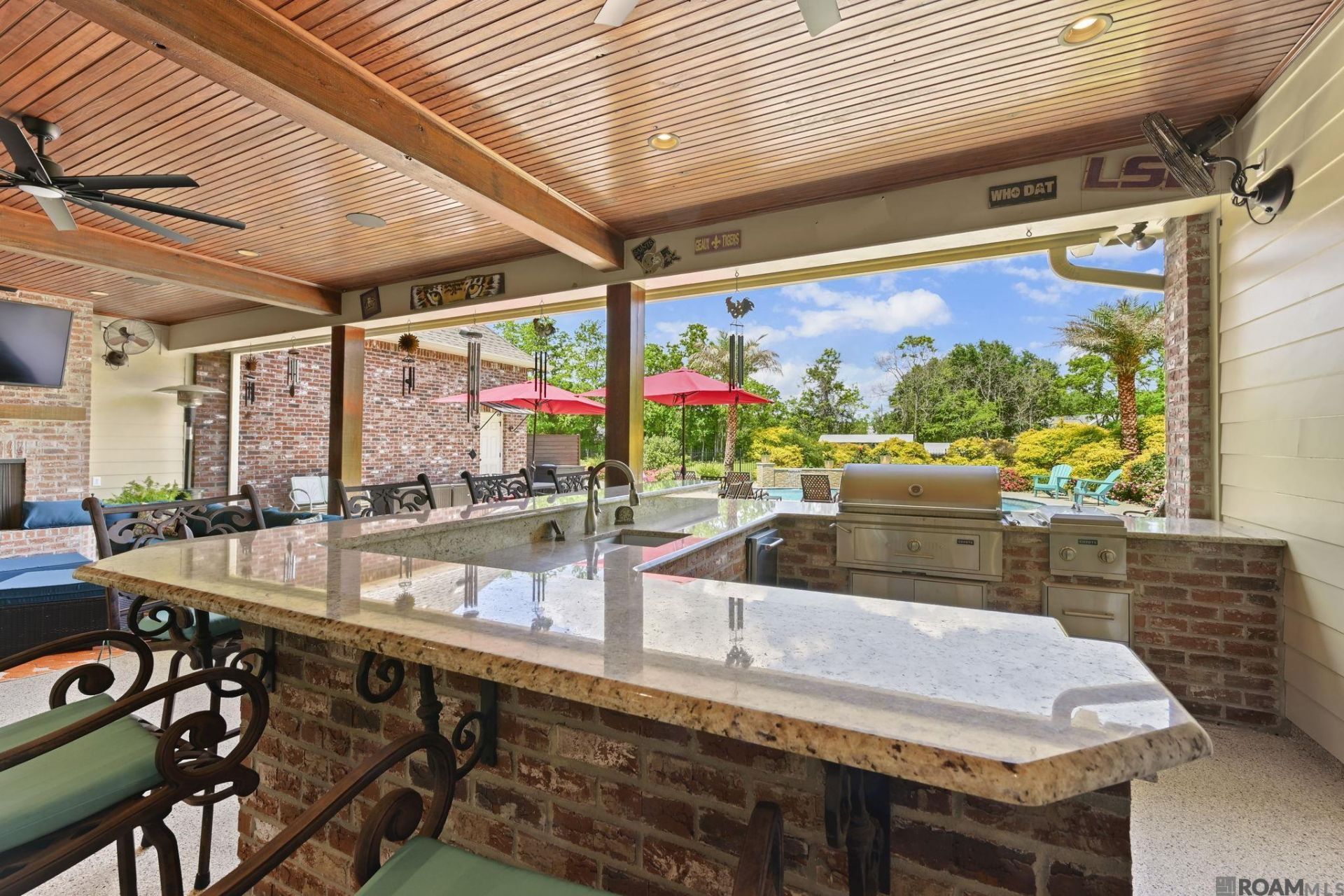 Tranquility...Privacy...Luxury. The only way to describe this stunning hidden gem in the heart of Prairieville. This custom designed and built home features 4 bedrooms, 2 full baths, and 3 half baths. A true chef's kitchen overlooks the expansive open living room and dining area with gorgeous exposed wood beams. Reclaimed knotty pine floors throughout most of the main level create a feeling of warmth and welcome. Interior brick in the entryway and kitchen welcome guests to an immediate view thru to the expansive landscaped outdoor gunite saltwater pool area complete with full kitchen, brick fireplace, and lots of seating. The kitchen boasts a dream 48 6 burner and griddle Thermador gas range, large walk in pantry any chef would love, and a huge center island with seating for 6 where family and friends can gather. The primary bedroom has windows across the rear overlooking the large open backyard, 3 acres of land to be exact, ensuring your complete quiet and privacy. The primary bath has a nice zero entry walk in shower, separate soaking slipper tub, his and her walk in closets, and vanities. The living room and outdoor patio both have very nice all brick wood burning fireplaces with gas starters. Upstairs is a large bonus area with a half bath that is perfect for entertaining, office, extra living, or maybe a movie theater. So many possibilities. There are 2 on demand hot waters heaters, 3 HVAC units (total of 11 tons), 2 ice machines-one in the kitchen and one in the outdoor kitchen, a 50 amp power hookup for your RV, a full alarm and camera system, and of course a whole house generator! The outdoor kitchen has a built in charcoal grill that has gas run to it so can easily be converted to a gas grill. Gutters are already installed all the way around and the pool area is fully fenced and beautifully landscaped. Sprinkler system in the flower beds so the maintenance is almost nothing. This estate is truly the epitome of luxurious indoor-outdoor living.