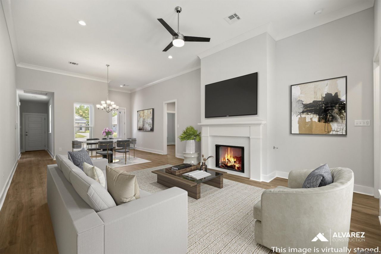 4.99% (5.73%) interest rate on GOV loans + closing cost assistance available! Estimated completion: complete and ready to move in *TO BE ELIGIBLE FOR A LOW INTEREST RATE ON GOV LOANS & CLOSING COST ASSISTANCE, A BUYER MUST USE SELLER'S PREFERRED MORTGAGE & TITLE COMPANY. NOT AVAILABLE ON ALL HOMES. OTHER RESTRICTIONS APPLY. CONTACT COMMUNITY SALES MANAGER FOR DETAILS.* Welcome to the Fir plan, a thoughtfully designed two-story home offering 4 bedrooms, 3 full baths, and 2,243 sq ft of elegant living space. The open-concept layout features 12-foot ceilings in the living room, a gas fireplace, and a gourmet kitchen with a large island, walk-in pantry, quartz countertops, and ceiling-height cabinetry. The private owner's suite includes a spa-style bath with dual vanities, soaking tub, tiled shower, and walk-in closet. Two bedrooms are on the main level, with a flexible fourth bedroom upstairs?ideal for guests or a media room. Level 2 Luxury Vinyl Plank in all bedrooms and living areas Upgraded tile to a level 2 in all bathrooms and the utility room Upgraded to quartz countertops throughout the home Upgraded the kitchen sink to a single basin style Upgraded the kitchen backsplash tile to a level 2 urban tile Added kitchen cabinets to the ceiling Added soft close doors and drawers to all cabinets (not including the trashcan pullout) Upgraded the owners shower to a tiled shower Upgraded to have wood framed mirrors in the bathrooms Upgraded to level 2 cabinet hardware round satin pulls