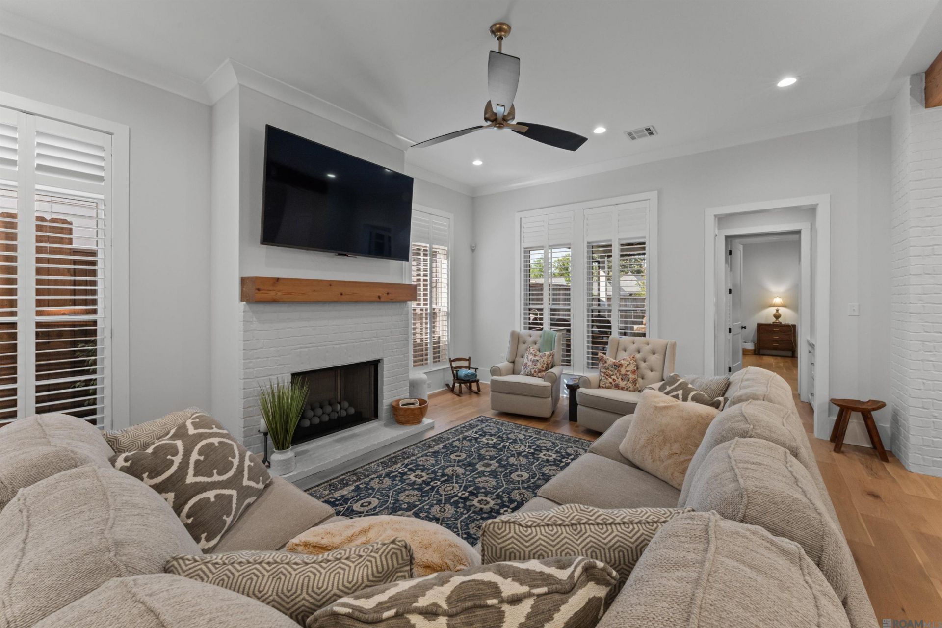 Located in the highly sought-after Inniswylde subdivision, this beautifully maintained home offers 2,676 square feet with hardwood flooring, high ceilings, plantation shutters, and professionally tinted windows throughout. The open layout centers around a kitchen with GE Monogram appliances, a gas cooktop, quartzite countertops, and an oversized island that connects seamlessly to the main living and dining areas. The primary suite features dual vanities with granite countertops, a soaking tub, a custom tiled shower, and a spacious walk-in closet. Additional bedrooms offer flexibility for guests or family. A dedicated downstairs office or study nook provides a convenient work-from-home space, while an upstairs loft adds versatility for a media room, office, or second living area. The fully fenced backyard includes a covered patio and outdoor kitchen with a Coyote grill, along with an underground sprinkler system for easy maintenance. Epoxy-coated front porch, patio, and garage floors add a clean, durable, low-maintenance finish. Conveniently located near I-10 and I-12 with easy access to shopping, dining, and everyday Baton Rouge amenities. with elevated finishes in a prime location.